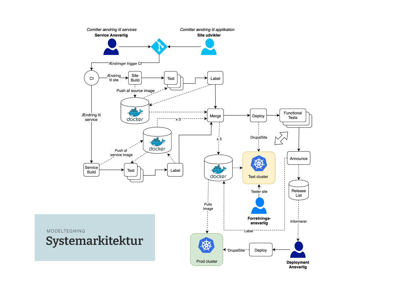 Projektet er altså en transition væk fra den traditionelle on-premise infrastruktur og ud i en public Cloud med SaaS komponenter, baseret på Kubernetes.